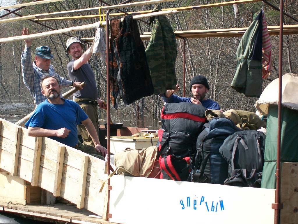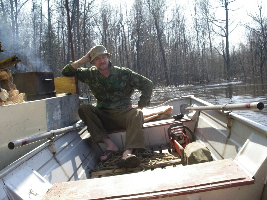 - Однажды плот застрял в ветвях деревьев и встал. Один из команды, взяв бензопилу, вызвался пилить ветки. Залез на дерево, освободил плот. «Упертый» пошел по течению дальше, а товарищ остался сидеть на дереве. За ним вернулась лодка.