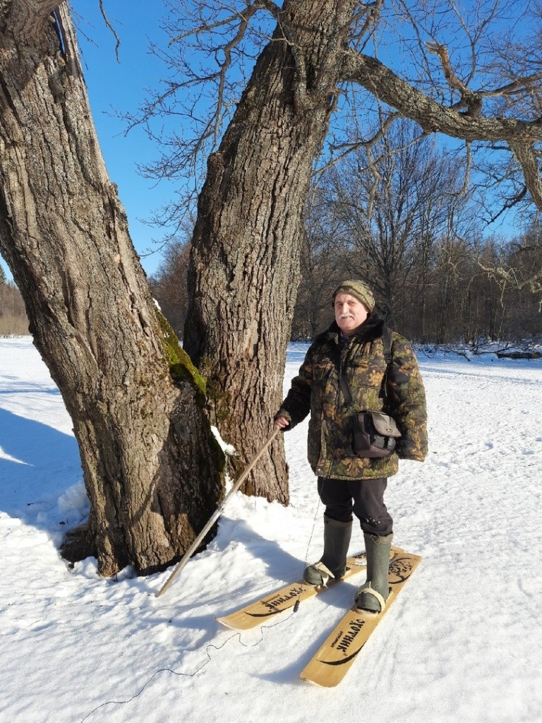 Кататься на лыжах, наверное, не приходилось со школы, но охотничьи – это совсем другое дело, нежели привычные пластиковые. Первое время шли пешком, обсуждая план прогулки, а уже потом слушали «шур-шур» от встречи дерева лыж с первым настом. Периодически звук заглушал речь нашего проводника и нужно было переспрашивать: разговор велся интересный.