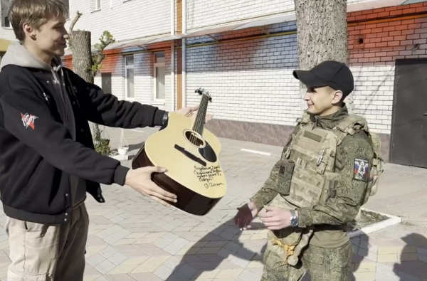 Певица подарила бойцу из Марий Эл гитару с собственным автографом.
