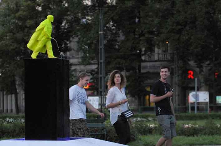 В Польше в Кракове на центральной площади носящей имя экс-президента США Рональда Рейгана, установлен ярко-салатовый «писающий» Ленин. Называется памятник «Фонтан будущего». Через несколько дней презентации памятник намерены перенести в сад городской бани.