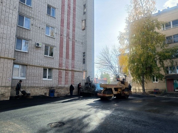 Завершена укладка асфальта в жилом квартале домов №39 на улице Кузьмина и №67 и 69 на улице Ленина. Сейчас ремонтируют территорию возле домов №6 и 6а на улице Лесозаводской.