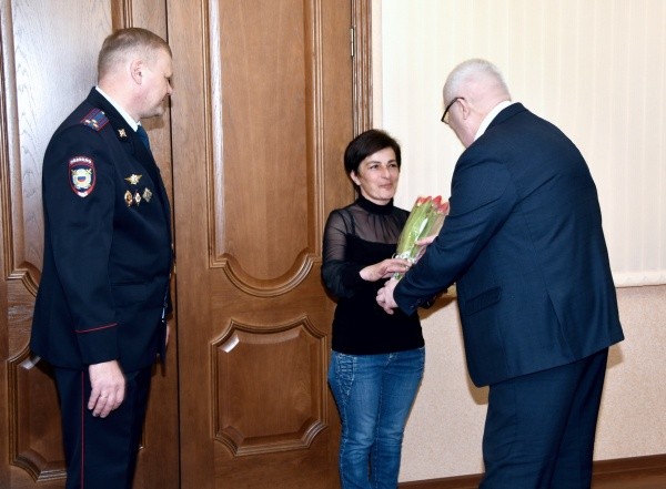 Сотрудники миграционного подразделения Управления МВД по Йошкар-Оле в короткие сроки оформили для беженцев свидетельства о предоставлении временного убежища на территории нашей страны. Документы вручил Министр внутренних дел по Марий Эл генерал-майор полиции Сергей Волчков, он поздравил женщину с прошедшим Международным женским днём и подарил ей цветы.