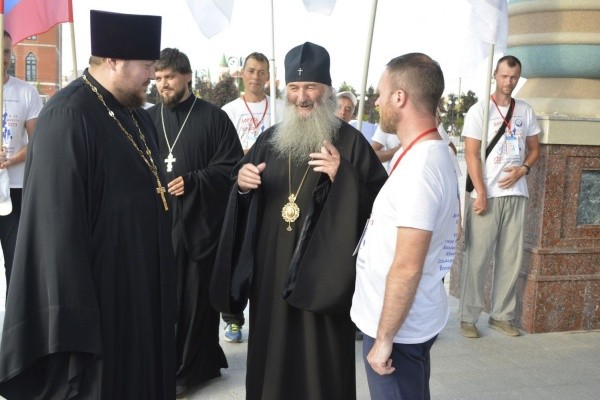 Проехав по центральным улицам Йошкар-Олы, велосипедисты закончили пробег на главной городской площади Пресвятой Девы Марии у Благовещенского кафедрального собора. Здесь их встретил митрополит Йошкар-Олинский и Марийский Иоанн.