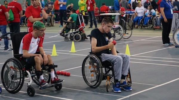 -Я его ассистент, - рассказывает Полина Бычкова. Спортсмены класса ВС1 играют сами, но поднять с пола мяч или повернуть коляску не могут, для этого нужны ассистенты. Я его ноги и все остальное, только мячи он бросает сам.