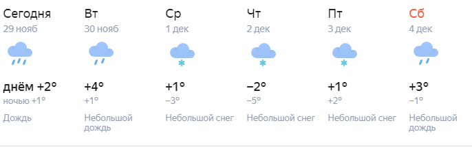 А вот белый нападавший за последние дни снежок наверняка смоет дождем. Самым холодным днем недели будет четверг. 2 декабря ожидается днем -2 градуса и снег, но к субботе снова потеплеет до +3 градусов.