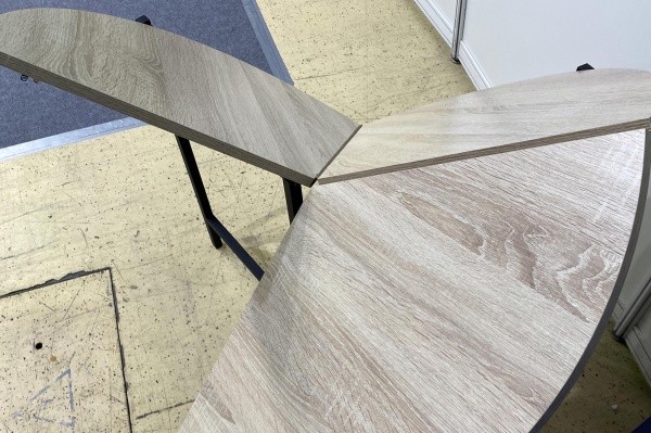 На выставке представлена разработка производственной службы исправительной колонии строгого режима № 6 – стол «Бабочка». Он выполнен в популярном стиле «лофт». Стол складывается и раскладывается вместе с ножками, что удобно при транспортировке. У «Бабочки» круглая столешница, поделенная на три «лепестка». Цена пробного экземпляра – 5000 рублей. За стоимость стол и был продан уже на второй день выставки.