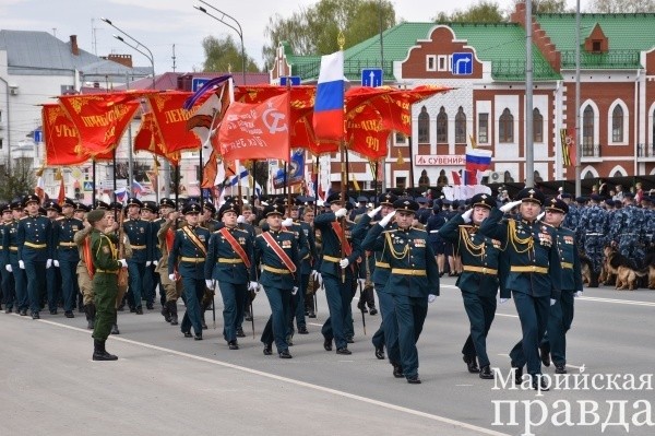 Воочию торжественный парад увидели тысячи йошкаролинцев, многие смотрели прямую трансляцию. Перед главной трибуной мероприятия прошли военнослужащие Йошкар-Олинского гарнизона, сотрудники правоохранительных органов, кадетские классы, проехала военная техника – автомобиль ГАЗ-66, 100-миллиметровая противотанковая пушка «Рапида», бронированная машина дистанционного разминирования «Листва», бронированные автомобили «Выстрел» и «Тайфун», автономная пусковая установка ракетного комплекса «Ярс», машины обеспечения.