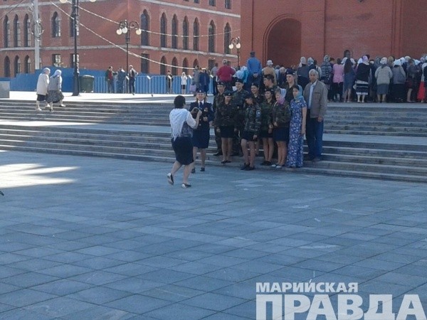 Уже несколько сотен православных йошкаролинцев пришли к собору Благовещения Пресвятой Богородицы.