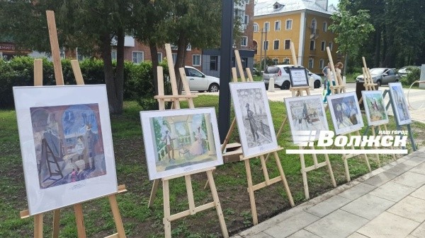 На площади также появилась и выставка работ учащихся Детской художественной школы города Волжска «Мир великого поэта» - на рисунках изображен сам Александр Сергеевич, запечатленный в различных сценах: здесь и зимние пейзажи, и конная прогулка, и уединенный разговор с возлюбленной. Охраняет уличную галерею двойник писателя. А юные художники, вдохновляясь живым чтением стихов, рисуют на мольбертах мелом персонажей из известных всем сказок.