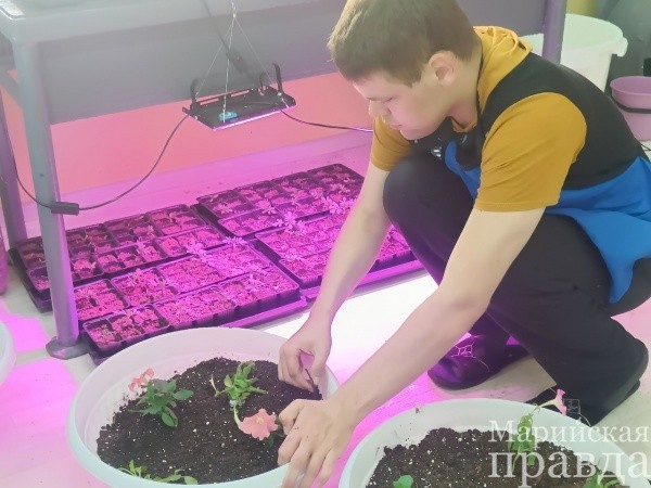 – Мы согласились. Был определенный страх, сможем ли мы осилить такой объем работы. Но при помощи педагога этого направления постепенно все продвигалось. С усилием, усердием. Сначала было сложно, но ребята втянулись в эту работу. Для них это очень важно. Это сильнейшая мотивация, потому что они работают не просто так, а все цветы будут радовать людей на протяжении всего лета, – говорит Александра Алексеева.