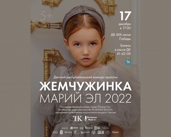 17 декабря в Йошкар-Оле состоится детский республиканский конкурс красоты «Жемчужинка Марий Эл-2022». Своей великолепием на сцене ДК им. ХХХ-летия Победы блеснет 21 участница от 5 до 14 лет. Они – очаровательные представительницы разных уголков нашей республики. Поддержите юных красавиц и подарите шанс одной из них представить Марий Эл на Всероссийском конкурсе красоты «Мини-мисс Россия 2023».