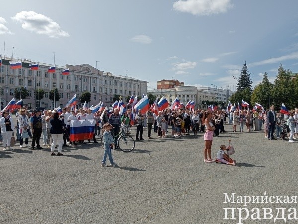 Сегодня, в День Государственного флага России, на площади имени Ленина марийской столицы было многолюдно. Именно здесь состоялась кульминация праздника — торжественное поднятие триколора.