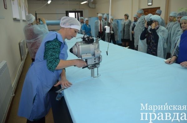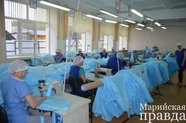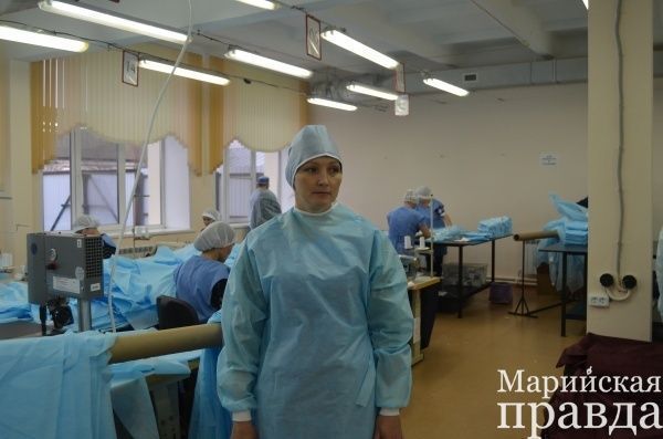 Производство это для Марий Эл и, особенно для сельского района, совершенно необычное: здесь шьют одноразовые хирургические халаты. Хотя как оказалось слово «шьют» в данном случае не совсем применимо, поскольку используется безнитевая технология, когда швы «свариваются» ультразвуком.