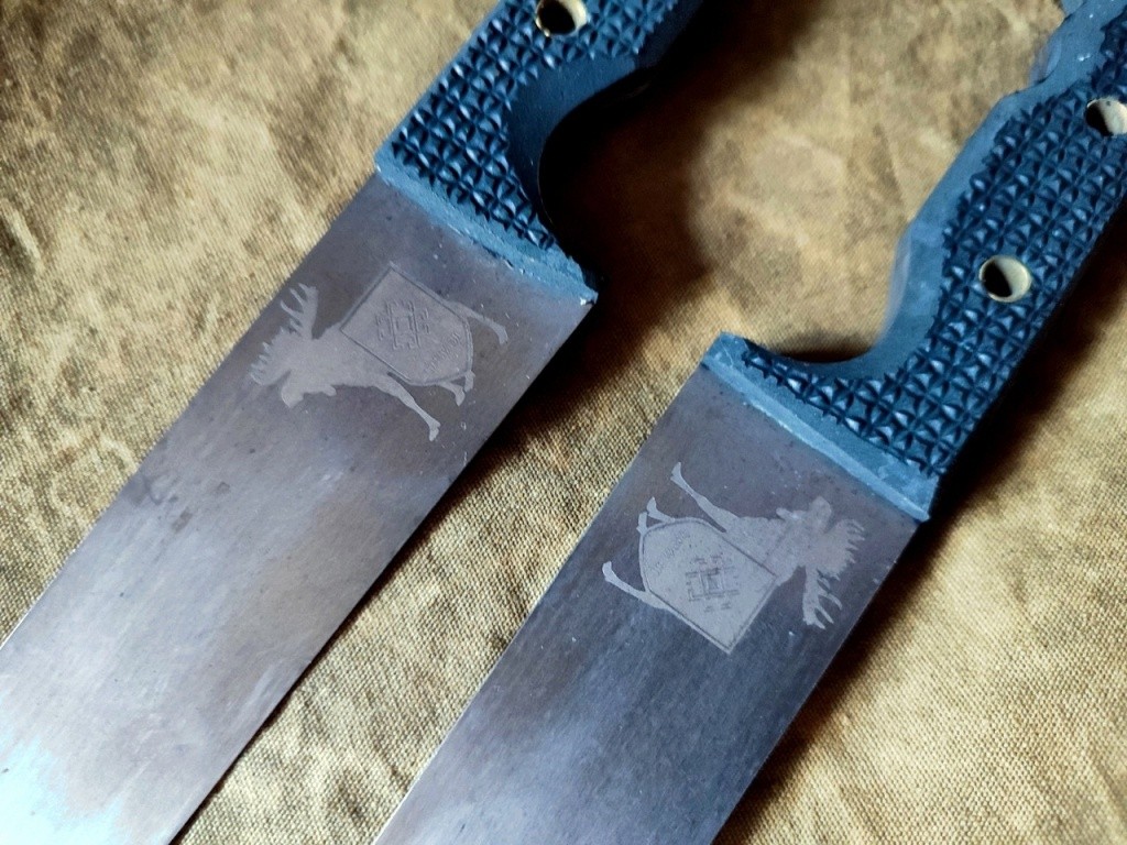 ‒ Ножей в этой серии было сделано 10 штук. По времени процесс занял где-то неделю, - рассказал Валерий. ‒ Они уже отправлены бойцам. На самом деле, подобные ножи бойцы в Донбассе заказывают мне с 2014 года. Регулярно отправляю, но вопрос в том, что за свой счет много не вышлешь: чтобы отослать условно «бесплатный» нож, надо продать четыре. Думаю, в работе у российских военнослужащих уже десятка два моих ножей. Первые были без гравировки.