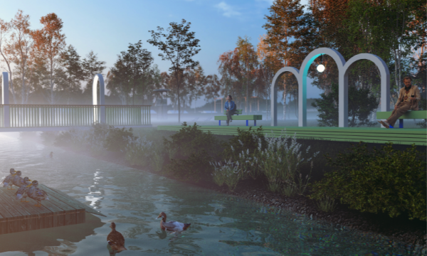 Горожан, которые хотели бы отдохнуть от суеты и насладиться природой, в парке будет ждать уютное место у воды. Здесь протекает небольшая река Коноплянка. Сейчас она находится в не очень хорошем состоянии, но администрация города планирует ее очистить. Старый аварийный мост реконструируют, а рядом с ним разместится пирс со скамейками для отдыха. Необычным дополнением станет домик для уток, расположенный на реке. Птиц можно будет покормить и просто наслаждаться, наблюдая за ними.