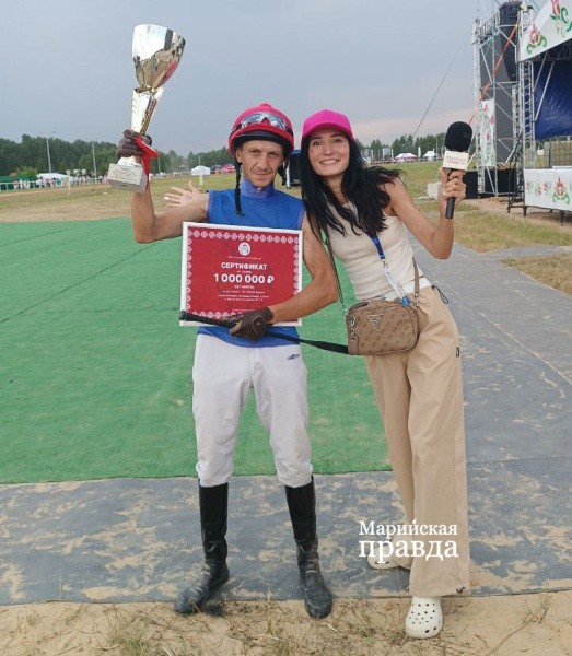 «Непередаваемые ощущения. Не каждый день миллион выигрываешь! 35 лет занимаюсь скачками. Поздравляю всех с большим праздником. Всем побед и успехов. Я сам с Кавказа, но сейчас живу в Челябинской области. Именно оттуда мы приехали со своей лошадью по имени Мудрый», – сказал Михаил Костюшин «Марийской правде» после получения сертификата.