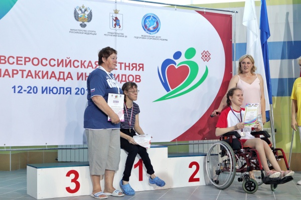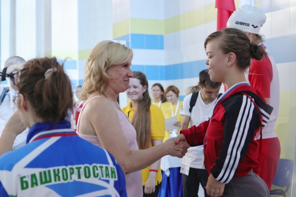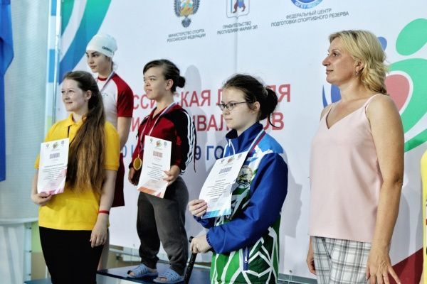 Министр спорта Марий Эл Лидия Батюкова вручила медали лучшим пловцам по итогам первого дня Спартакиады.