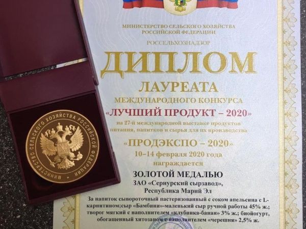На 27-й международной выставке продуктов питания, напитков и сырья для их производства «ПРОДЭКСПО-2020» «Сернурский сырзавод» Марий Эл блистал настолько, что получил Диплом лауреата и золотые медали.