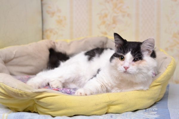 Этого несчастного кота нашли в большой праздник. Он походил на натуральный скелет, лапа висела, один глаз был покрыт пленкой.