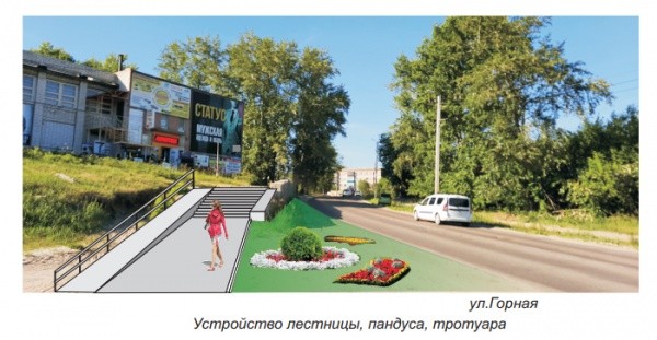 Предварительно территорию осмотрела общественная комиссия, а затем был разработан дизайн-проект. В настоящее время предлагается провести асфальтирование участков тротуаров по улицам Горная и Кошкина, благоустройство площадки вокруг декоративной стелы памяти Герою Советского Союза Андрея Кошкина возле школы №3, а устройство лестницы и пандуса на спуске по улице Горная.