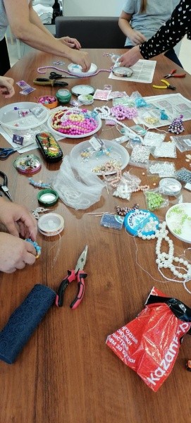 На несколько часов прекрасные мастерицы погрузились в пространство, наполненное разноцветными бусинками, и создали волшебных ангелочков.