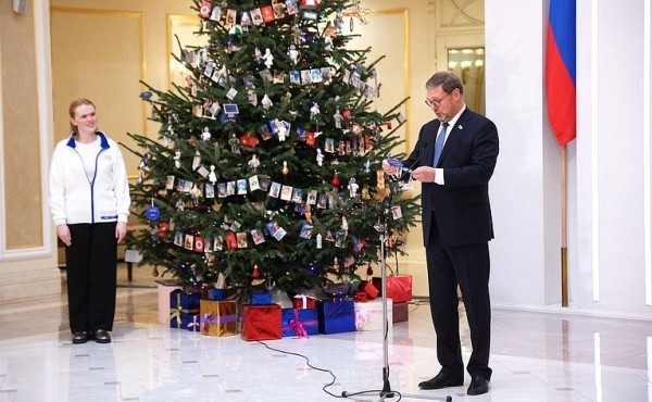 Константин Косачев снял с елки шары с желаниями 4-летнего Матвея из Московской области, который мечтает о спортивном комплексе, и 15-летнего Никиты из Марий Эл, который загадал мото-экипировку.