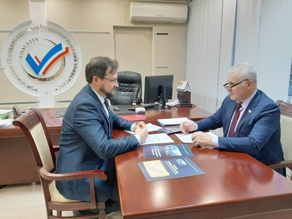 В нашей стране принято решение создавать военно-учебные центры при ведущих вузах России. О возможности реализации этого проекта в стенах ПГТУ первый заместитель председателя Комитета по обороне и безопасности Совета Федерации Сергей Мартынов поговорил с ректором Волгатеха Игорем Петуховым.