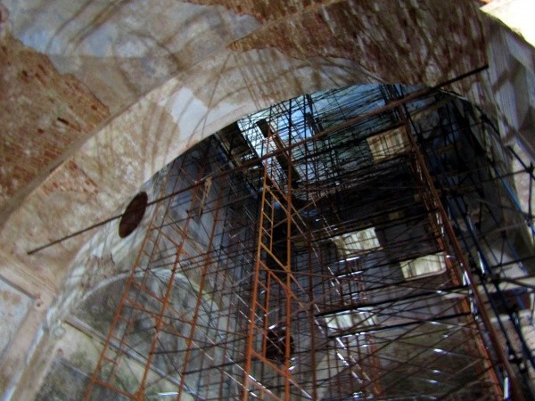 В храме идут внутренние работы и укрепление стены. С наступлением тепла – рабочие станут расширять фундамент.