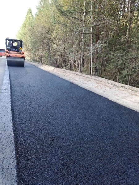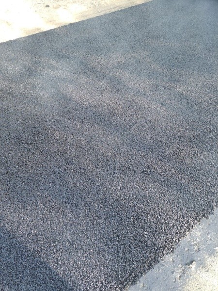 Было принято решение провести ремонт щебеночного покрытия по новой экспериментальной технологии. После устройства покрытия из щебеночно-песчано-гравийной смеси на участке нанесли защитный слой битумоминеральной смеси, что должно продлить срок службы покрытия в нормативном состоянии.