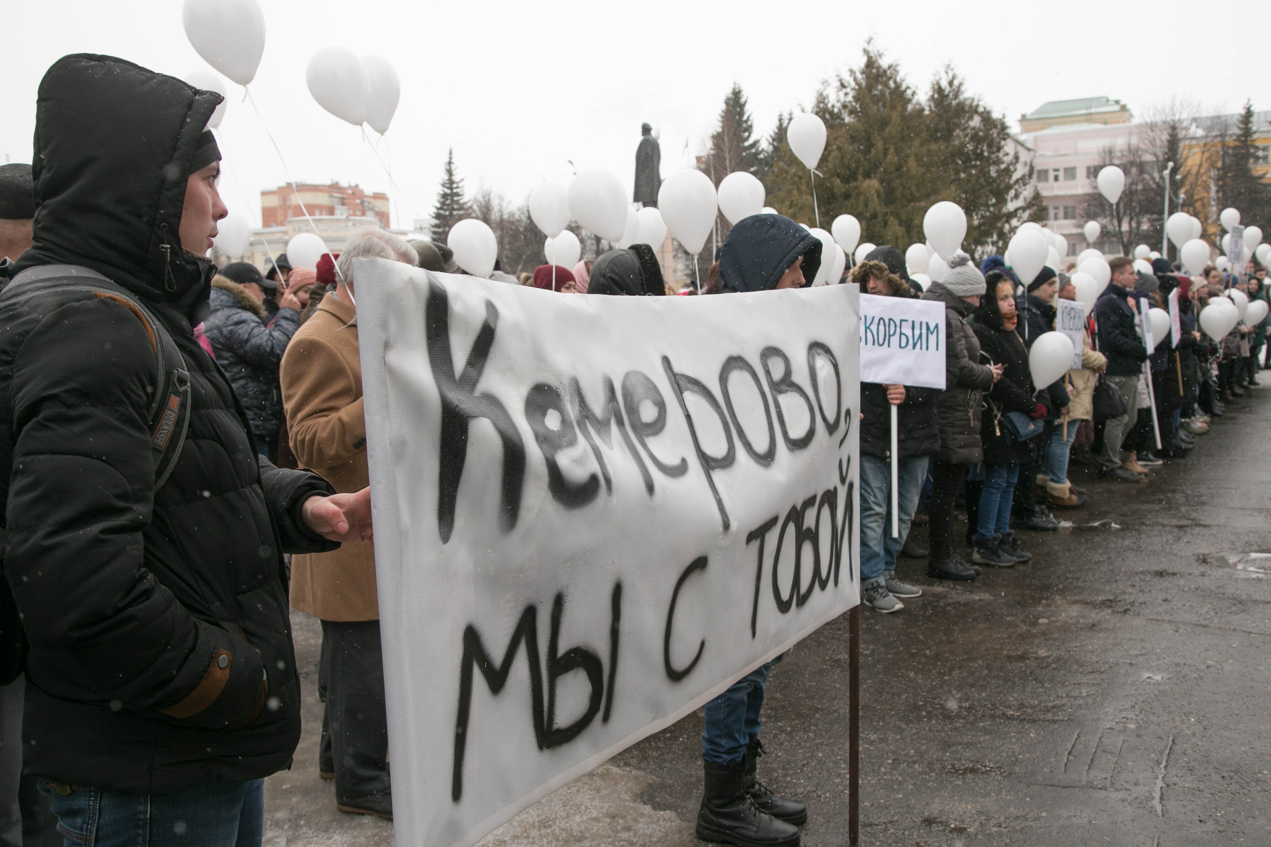 Чудовищная трагедия в столице Кузбасса, унесшая множество жизней, нашла отклик в сердцах йошкаролинцев. На площади Ленина, перед Марийским национальным театром драмы им. М.Шкетана, собралось около полутора тысяч человек: члены правительства, депутаты Государственного и городского собраний, студенты и другие жители города, которые в этот тяжелый час не смогли остаться в стороне.