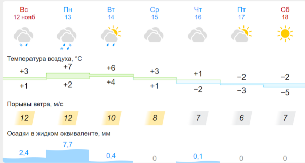 В Волжске ситуация аналогичная, с отличием в один градус: в начале недели ожидается температура воздуха в +8 - +7 градусов, как и в Звенигове. В Козьмодемьянске похолодание начнется с четверга.