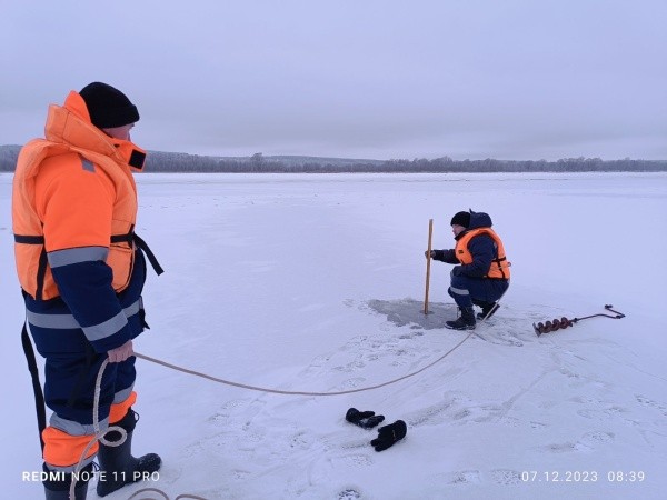 Сотрудники Марийской аварийно-спасательной службы замерили толщину льда на реках в разных районах республики.