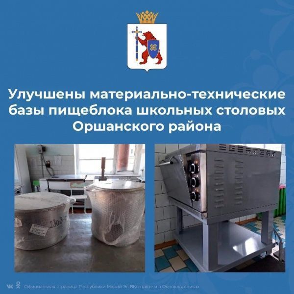 В Оршанском районе в рамках государственной программы «Развитие образования» на 2013-2025 годы по организации бесплатного горячего питания обучающихся 1-4 классов реализуются мероприятия, направленные на улучшение материально-технической базы пищеблока школьных столовых, сообщает официальный паблик Правительства республики .