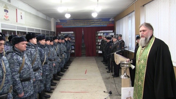 На смену прибывшим в очередную длительную командировку в Северо-Кавказский регион отправился еще один сводный отряд сотрудников органов внутренних дел Марий Эл. Член Общественного совета при МВД протоиерей Александр Бачурин пожелал полицейским душевного мира, светлых помыслов и мужества при выполнении задач на благо Отечества. После этого священник окропил каждого сотрудника святой водой и вручил им иконы.