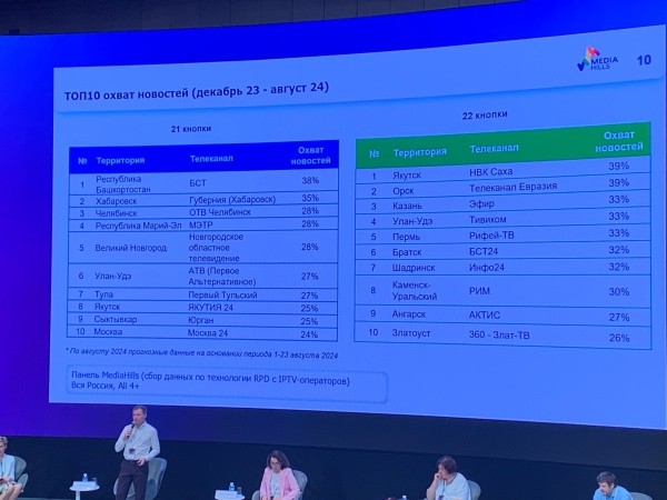 Итоги телеизмерений за первые восемь месяцев текущего года озвучил Андрей Бояринов, генеральный директор компании MediaHills на XXVIII Международном конгрессе НАТ, который сейчас проходит в Москве. Об этом сообщила директор МЭТРА Ирина Фоминых на своей странице во «ВКонтакте».