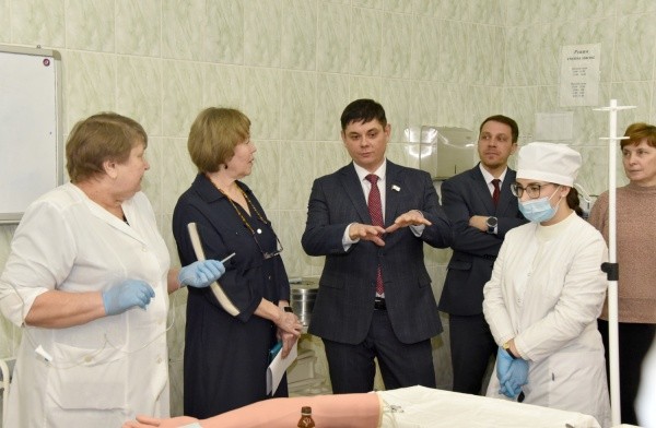 Перед заседанием Комитета по социальной политике, здравоохранению и делам ветеранов депутаты ознакомились с преподавателями и учебными аудиториями Йошкар-Олинского медицинского колледжа.