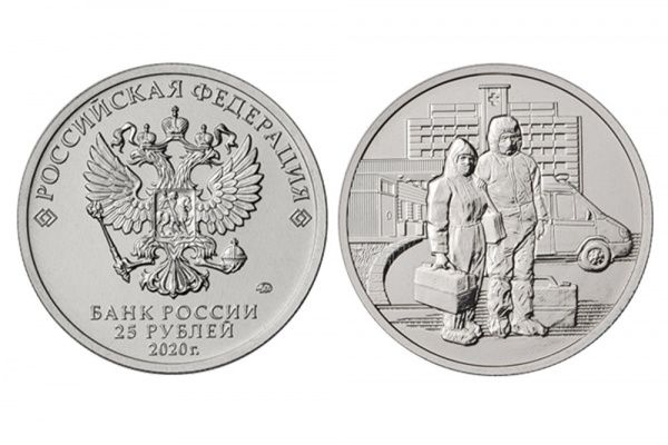 В обращение вышли памятные 25-рублевые монеты, изображающие врачей. Это было сделано в честь работавших на передовой во время пандемии коронавируса сотрудников медицинских учреждений.