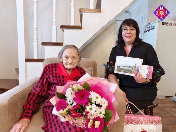 Заместитель министра труда и социальной защиты республики Наталья Якурнова поздравила именинницу. Ей вручили личное поздравление от Президента Владимира Путина. Также она получила персональное поздравление от Юрия Зайцева, ей передали цветы и памятные подарки.