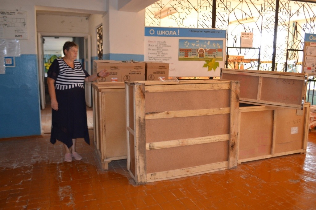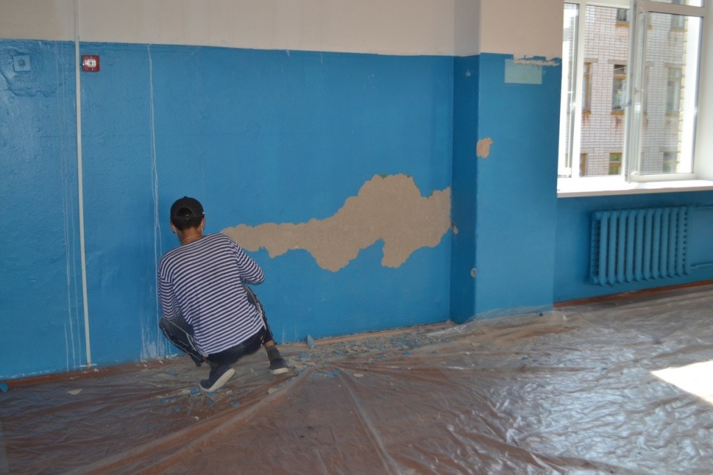 В классах на первом этаже начальной школы и в туалетных комнатах деревянные окна были заменены на пластиковые. Идет замена водопроводной и канализационной сетей в 37 туалетных комнатах школы и в душевых комнатах спортзала. Закончился демонтаж трубопроводов, санитарно-технического оборудования, сейчас сантехники проводят разводку водопровода и скоро установят новые раковины и унитазы. В туалетах идут отделочные работы.