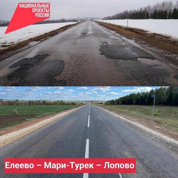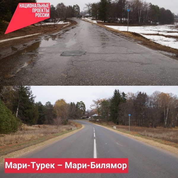 Автомобильные дороги Елеево – Мари-Турек – Лопово (с 56 по 62 км) и Мари-Турек – Мари-Билямор (с 16 по 20 км) были обновлены методом холодной регенерации. На участках выполнено устройство основания из органоминеральной смеси с добавлением битумной эмульсии, портландцемента и щебня, благодаря которой усилится несущая способность дорог.