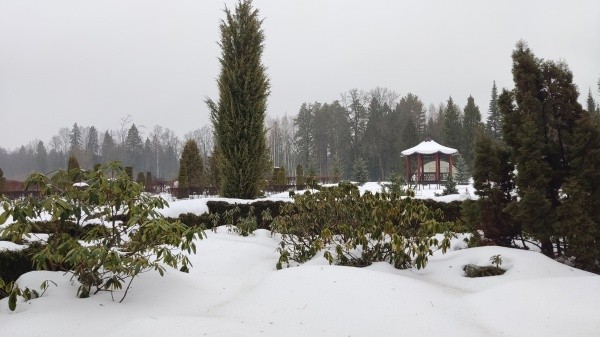Из-за аномально теплой для февраля погоды снег в Ботаническом саду-институте Йошкар-Олы стремительно тает. Такие условия могут негативно сказаться на зимующих растениях.