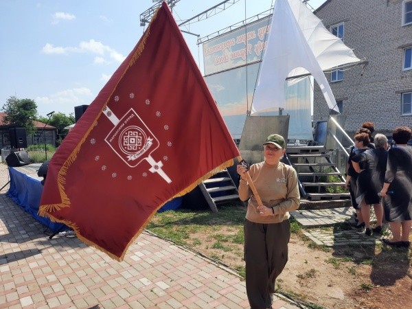 Вчера Знамя вручили жене участника СВО из Виловатово, активистке гуманитарного движения Наталье Гараниной, а позже его выставят в сельском центральном модельном доме культуры.