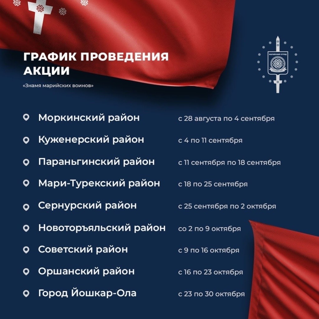 Вчера, 6 июля, в селе Виловатово Горномарийского района стартовала акция «Знамя марийских воинов», получившая поддержку Главы Марий Эл и организованная как символ помощи землякам ‒ участникам СВО.