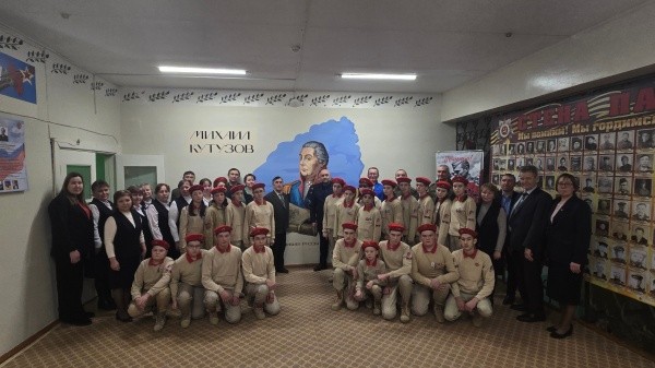 В Кельмаксолинской средней школе Советского муниципального района состоялось торжественное открытие мурала, посвященного великому русскому полководцу Михаилу Кутузову. Мероприятие прошло в рамках всероссийского проекта «Лица Героев» партийного проекта «Новая школа» и при поддержке Министерства просвещения Российской Федерации.