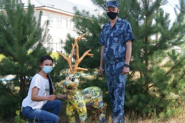 Арт-объект получил имя Айхо, а сделала его осужденная Наталья Баранова. Олененок установлен возле столовой учреждения.