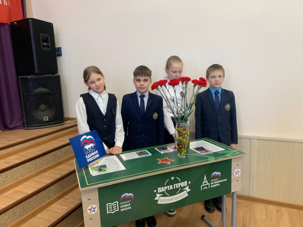 Образовательный проект «Парта Героя», запущенный в рамках партийного проекта «Единой России» «Новая школа», рассказывает школьникам о земляках, совершивших доблестные поступки и проявивших личное мужество. На школьных партах размещён QR-код, содержащий информацию о героях. Право сидеть за такой партой предоставляется ученикам за отличия в учёбе и активное участие в жизни школы.