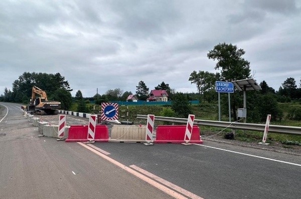 Одна половина проезжей части уже готова, осталось установить перильные и барьерные ограждения. Длина конструкции составляет примерно 35 метров. Вторую половину ещё восстанавливают. Транспорт движется по временным дорожным плитам – они защищают выравнивающий слой пролётного строения. Завершается укрепление конусов и монтаж локальных очистных сооружений.
