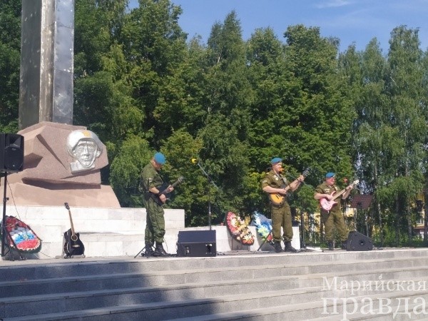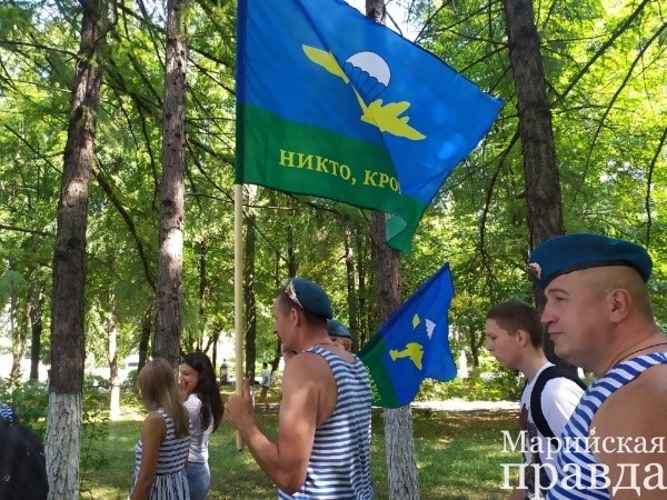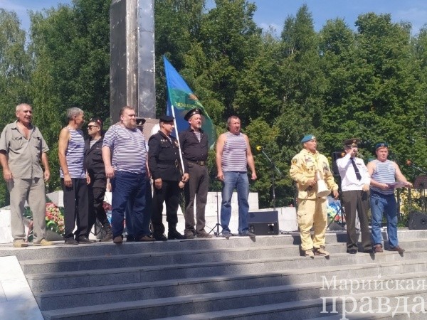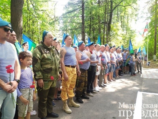 Затем общее собрание продолжилось возле обелиска павшим воинам, где героев праздника поздравили их братья «по тельняшкам» - военные моряки, представители союза десантников Зеленодольска. На мероприятии выступила группа «Выбор» из Йошкар-Олы, которая исполнила любимые хиты, посвященные подвигу 6 роты, офицерскому составу и всем защитникам Родины.