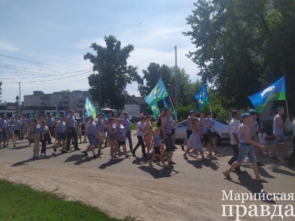 После построения и возложения цветов общим взводом десантники Волжска прошлись по центру города. За ними следовал кортеж из автомобилей, из окон которых развевались флаги ВДВ. Колонну «крылатой» пехоты с возгласами встречали жители Волжска. Отметим, что шествие десантников Волжска по центральной улице – это традиционное мероприятие празднования Дня ВДВ в городе.