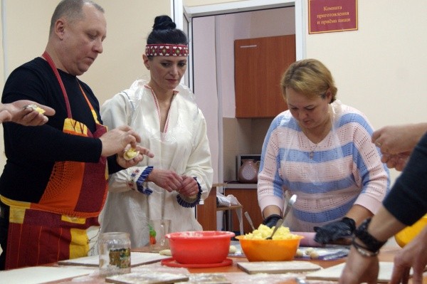 А в исправительном центре при колонии-поселении № 7 профессиональный повар провел для осужденных мастер-класс по приготовлению национальных марийских подкоголей. Праздник начался с поздравлений от руководства и этнографической викторины с вопросами о традициях народов страны. А пока жюри подводило ее итоги, главный технолог учреждения Людмила Волкова научила всех желающих готовить подкоголи с творожно-картофельной начинкой. Блюдо, которое подали с топленым сливочным маслом и сметаной, попробовали все осужденных исправительного центра. Мастер пообещала провести уроки по приготовлению и других национальных марийских блюд.